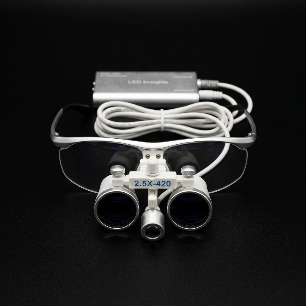 Бінокулярна лупа-окуляри 2.5x з підсвіткою використовується для роботи з дрібними об’єктами на комфортній відстані без навантаження на зір. Підходить для електроепіляції, косметології, стоматології, ювелірних робіт, ремонту електроніки та годинників.