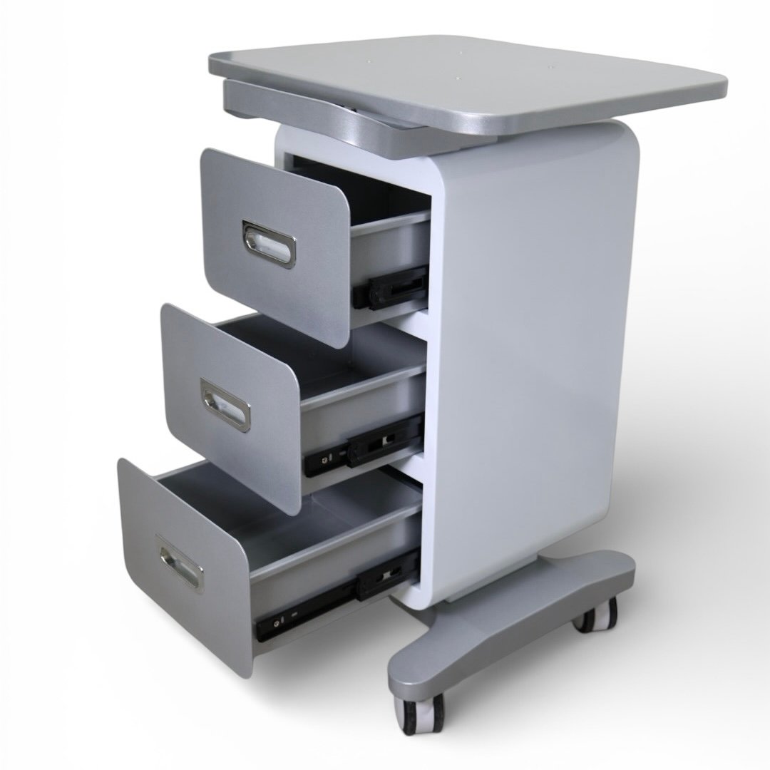 Візок LT-08 створений для комфортного розміщення сучасних апаратів лазерної епіляції та апаратної косметології, коли важливі і стабільність, і акуратний вигляд робочого місця. Стільниця 42×50 см та посилена конструкція вагою 23 кг забезпечують надійну опору навіть для важких апаратів і мінімізують ризик зміщення під час процедур.