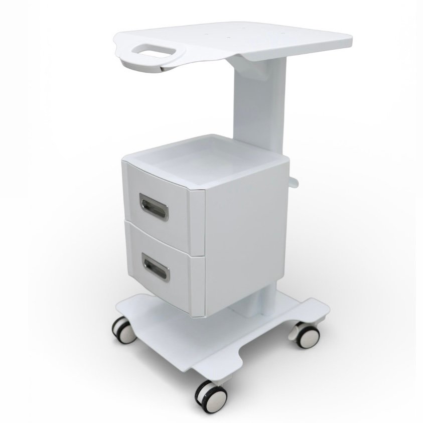 Візок косметологічний LASERTECHNOLOGY LT-10 з компактною стільницею 37×37 см, двома шухлядами та вбудованим блоком розеток. Забезпечує порядок, мобільність і зручне розміщення косметологічних та апаратних систем у кабінеті.