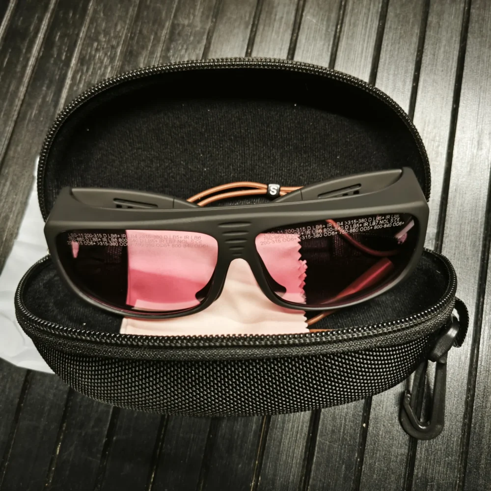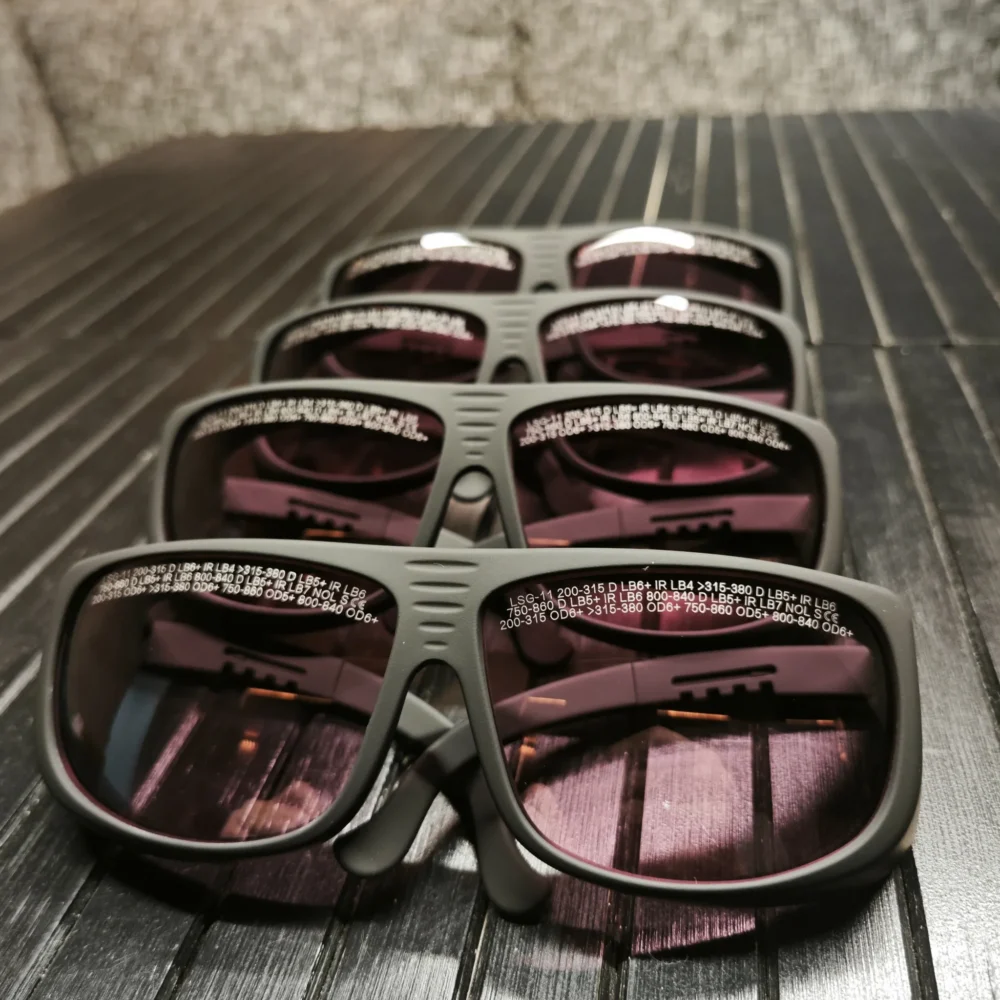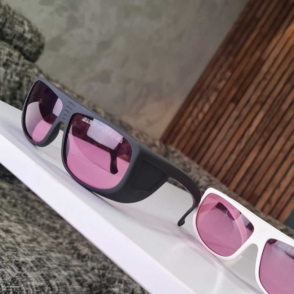 Професійні окуляри для лазерної єпіляції, з полікарбонату та матеріалів, що поглинають лазерне випромінювання, широко використовуються в лазерній промисловості. Це професійні лазерні захисні окуляри. Оптимально підходять для використання з лазерами з довжиною хвилі 266нм, 355нм, 755нм, 808нм, 810нм, 830нм.